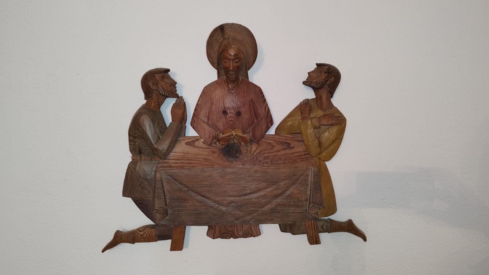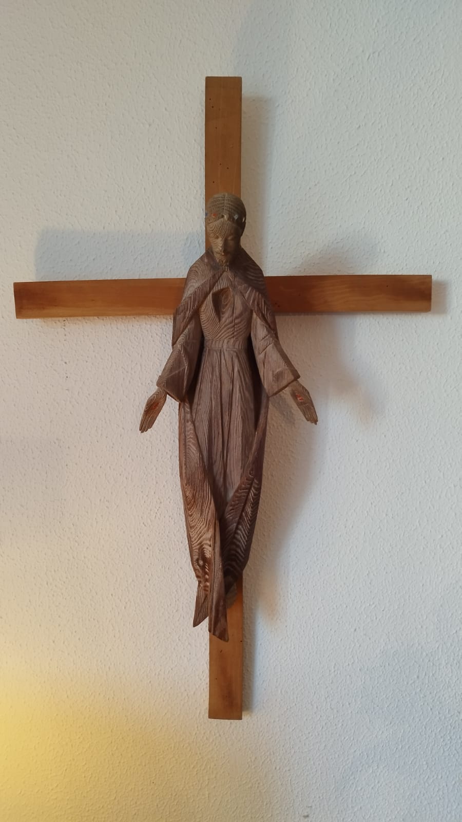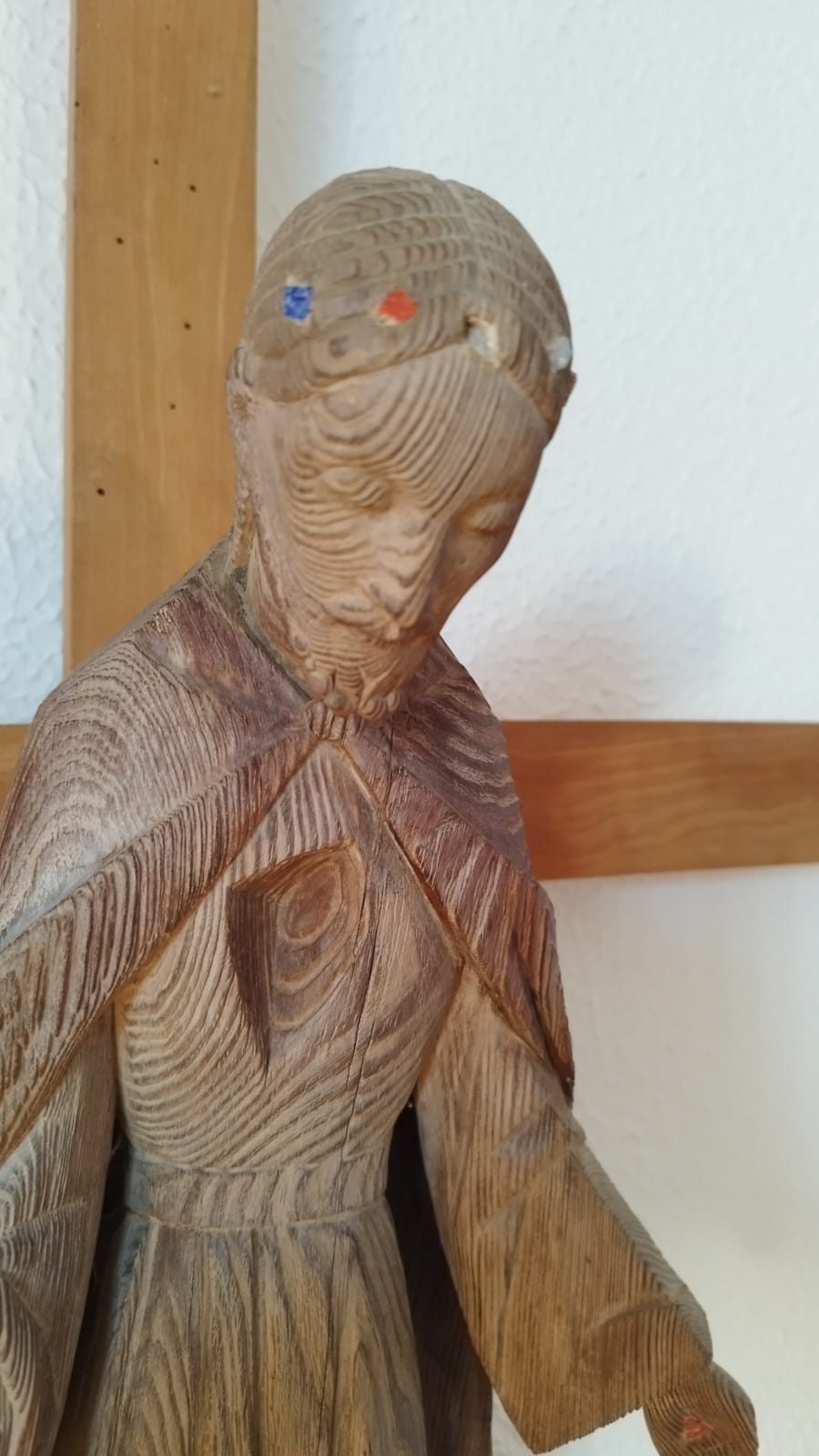 Fray José María Aguilar Collados (1909-1992) fue un escultor madrileño de la Orden Jerónima, que en 1956 es trasladado a Sevilla como prior del Monasterio de San Isidoro del Campo. Su presencia en Sevilla coincide con la apertura de la Iglesia al arte contemporáneo, por lo que sus imágenes reflejan una voluntad explícita de modernidad e innovación, así como una gran libertad respecto a la tradición imaginera local. En 1960 realiza en mármol blanco la Virgen de Belén para la Capilla del Seminario Menor de Pilas, en la que predominan las formas curvas que convierten a la Madre en la cuna del Niño. El autor es capaz de realizar una imagen llena de belleza, ternura y calidez, a pesar del material utilizado, en la que destacan los rostros de la Virgen y del Niño, así como la relación que se establece entre ambos.